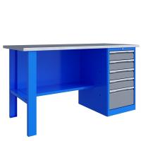 - Верстак состоит из прочной двухслойной столешницы, поддерживаемой тумбой и опорой из холоднокатаной стали, и полки-стенки.