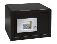 Сейф запирается электронным замком с возможностью вводить как коды пользователей, так и мастер-код администратора. Также возможно установить второй мастер-код для использования сейфа в гостиницах. Замок снабжён приводом автоматического открывания двери, что делает использование сейфа более лёгким и удобным. Питание замка осуществляется от батарей, внешнего источника питания не требуется.